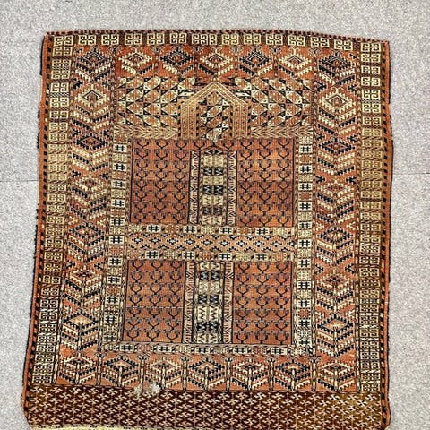 Autentisk stykke tilhørende Ersari-stammernes traditionelle stil, kendt for deres højkvalitets og holdbare tæpper.