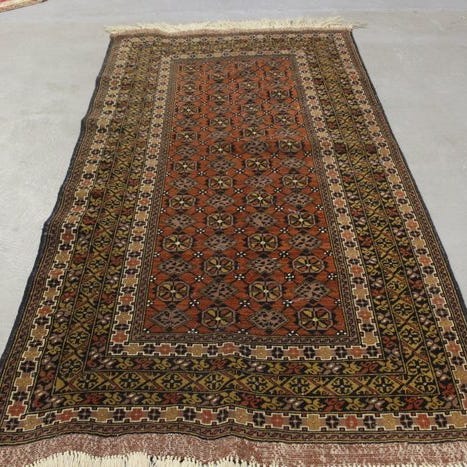 Afghansk oprindelse, materiale uld på bomuld, størrelser 195 x 108 cm, i god, renoveret stand. Klik på den blå "gå til varen" knap, for at købe eller byde på denne vare. Den samlede pris vil blive vist inden du afgiver dit bud.