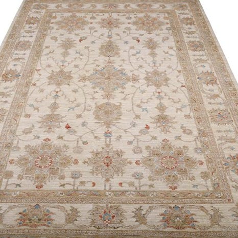 Ny håndlavet Ziegler-Shams tæppe lavet i Pakistan. Fremstillet af fin uld på en bomuldsgrund med et mønster, der tager sin inspiration fra Ziegler-tæpperne; dette meget holdbare tæppe er et fremragende eksempel på, hvad høj kvalitet i Shams-tæpper handler om.