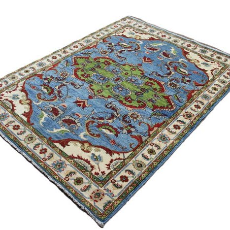 Dette er et håndknyttet østligt tæppe, lavet af holdbare, naturlige materialer. Måden det er vævet på, og mangfoldigheden i mønstrene gør dette tæppe til et unikum og understreger det autentiske og håndværksmæssige karakter.
