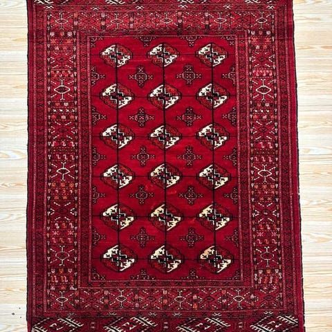 Russisk oprindelse Bukhara-tæppe, uld på uld, 190 × 105 cm, rød, ca. 5 kg, tidligt i det 20. århundrede, i god, renoveret tilstand. Klik på den blå "gå til varen" knap, for at købe eller byde på denne vare. Den samlede pris vil blive vist inden du afgiver dit bud.