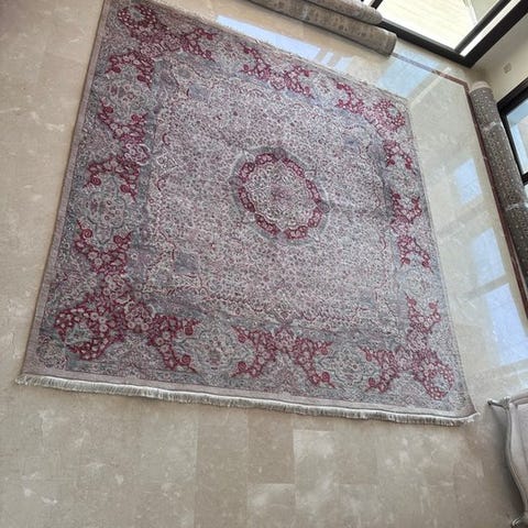 Tæppet er i god stand, klar til brug. Det har stået i stuen.