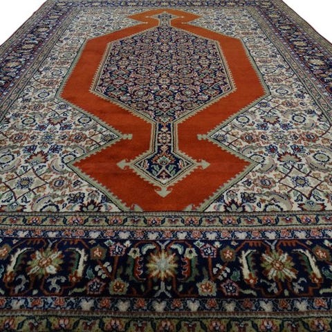 Indisk fremstilet Bidjar-tæppe, 164 x 112 cm, flerfarvet, håndknotet uld på bomuld, fra det 21. århundrede, i god stand. Klik på den blå "gå til varen" knap, for at købe eller byde på denne vare. Den samlede pris vil blive vist inden du afgiver dit bud.
