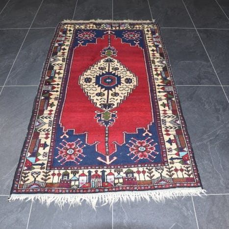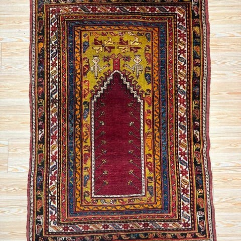 Anatolia Antiquitetetæppe fra Türkiye, håndknyttet uldtæppe fra slutningen af det 19. århundrede, måler 152 x 114 cm med flerfarvede motiver og i godt stand med aldersspor. Klik på den blå "gå til varen" knap, for at købe eller byde på denne vare. Den samlede pris vil blive vist inden du afgiver dit bud.