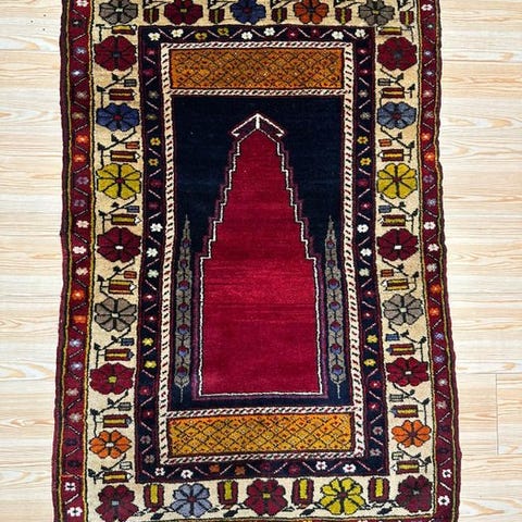 Venligst se nøje på alle billederne. Da dette er et antikt håndlavet tæppe, kan tegn på alder, mindre slid eller imperfektioner være synlige. Disse karakteristika er en del af dets ægthed og charme.