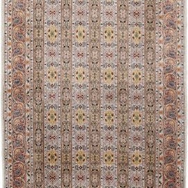 Et fuldt håndvævet kinesisk silketæppe, det er helt og holdent lavet af silke—warp, weft og pile er alle silke. Venligst undersøg tæppet omhyggeligt og observer lysrefleksionen i silken; tæppet er blevet professionelt rengjort og klar til brug.