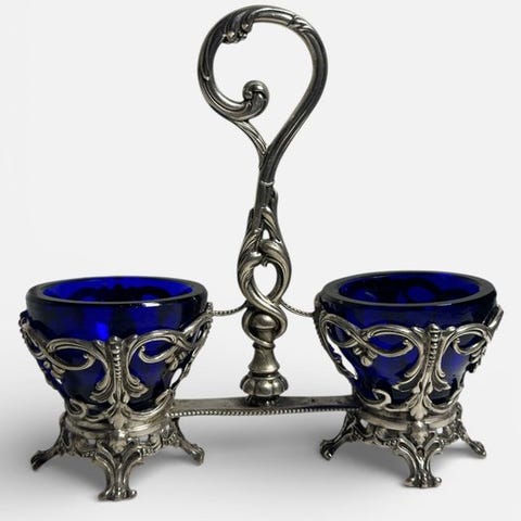 -Materiale: sølvbelagt alpaka (tysk sølv eller Maillechort i Frankrig = et yderst modstandsdygtigt hvidt metal belagt med et generøst lag sølv).
