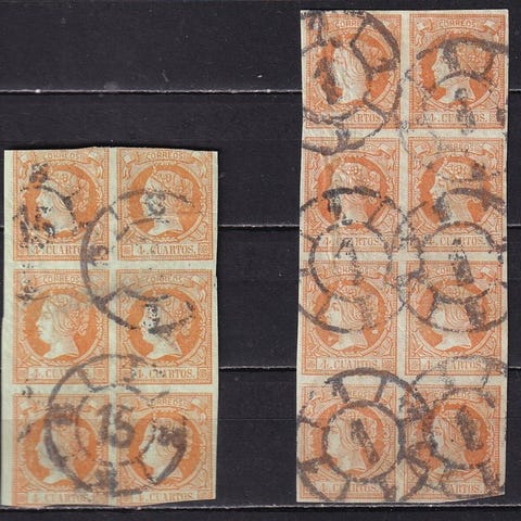 Spanien 1850 - 6 Cuartos Sort Matasellos P.P. fra Cádiz i Rød - Edifil 1 Plan...