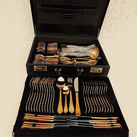 Bestikket består af et stort antal dele (mindst 84) til 12 gæster, inklusiv bordservice, spiseskeer, teskeer og dessertskjeer samt dessertgafler.