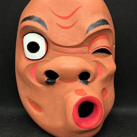 Træudskåret Noh-masken Fukai af Imai Kōtarō, Japan, cirka 1980–1990, mål 24 × 15,5 × 8,5 cm, i god stand med aldersrelaterede tegn; med underskrevet tomobako. Klik på den blå "gå til varen" knap, for at købe eller byde på denne vare. Den samlede pris vil blive vist inden du afgiver dit bud.
