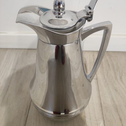 Termos, med termosholder, biseksuel for børn/unge, rustfrit stål, aldrig brugt. Termosholderen har tegn på tidsforløb (kun udvendigt). Det samme termos (også kun udvendigt). Termosholderen er udstyret med en stofhåndtag på siden, justerbart skulderbælte og en lynlås bagpå, og som termisk termos vil den holde drikkevarerne kølige.