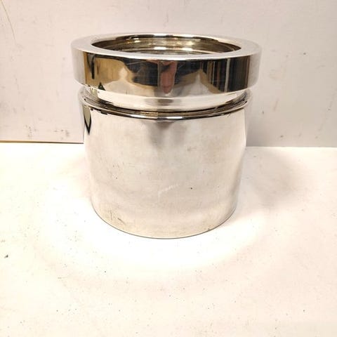 Flaskeholder udstyret med sin isbøtte, konstruktion i rustfrit stål med ydre overflade i sort satin, design Gio Ponti for Fretelli Calderoni Milano, i god behold, fra 1980’erne, diametre: 11 cm og 16,5 cm, højder: 14,5 cm og 22 cm, demonstrationsflaske ikke inkluderet, omhyggelig emballage og sporbar forsendelse, forsendelsen er kun tilgængelig inden for EU.