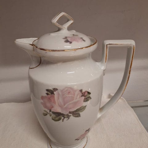 En vidunderlig Herend porcelænskaffekande, udsmykket med det elegante Bouquet de Saxe-mønster.