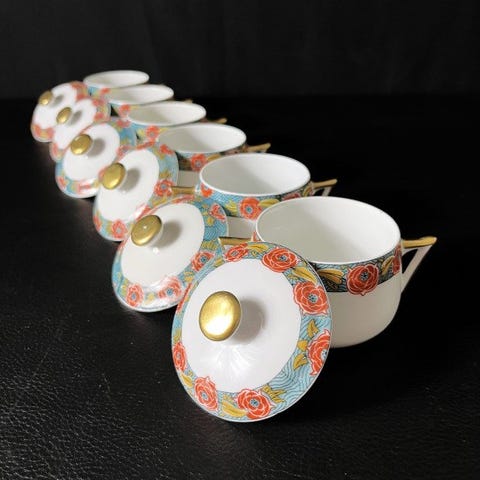Porcelænet udviser et omhyggeligt håndværk, med en smuk finhed i udførelsen og en elegant forgyldning, typisk for slutningen af 1800-tallet / begyndelsen af 1900-tallet.