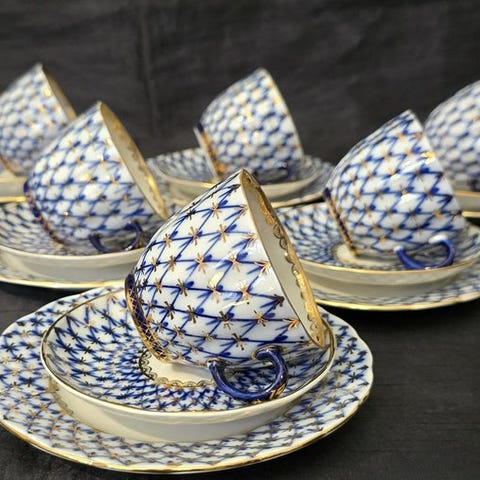 Lomonosov Imperial Porcelain Factory - COBALT BLUE - Kaffesæt til 6 (18) - Po...