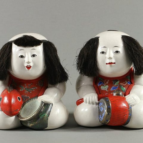 Oprindelse Japan; Geisha-dukke med titel "First Frost (初霜)" af Tomiko Kono; Oyama-stil fra Showa-æraen; ca. 45 cm høj på sort lakeret træstativ med original træ-titelplade; emballage uden æske; i god stand med let alderspletter og mindre pletter. Klik på den blå "gå til varen" knap, for at købe eller byde på denne vare. Den samlede pris vil blive vist inden du afgiver dit bud.