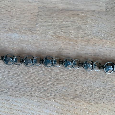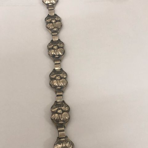 Sølvarmbånd fra Indien med to sten, muligvis granat, ca. 1970; mål 7 x 6,8 cm; vægt ca. 40 g. Klik på den blå "gå til varen" knap, for at købe eller byde på denne vare. Den samlede pris vil blive vist inden du afgiver dit bud.