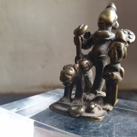 Islamisk bronzeolie-lampe fra det 10.–12. århundrede, Afghanistan som oprindelse, med kufiske inskriptioner, mål cirka 13 cm høj, 9 cm bred og 13,5 cm dyb, i passende stand. Klik på den blå "gå til varen" knap, for at købe eller byde på denne vare. Den samlede pris vil blive vist inden du afgiver dit bud.