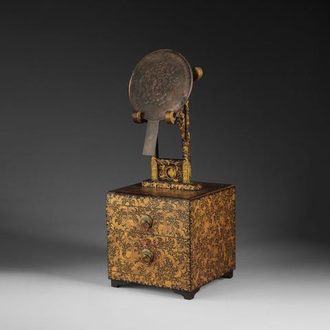 Sjælden Qajar Khatamkari-boks med foldbar spejl og skuffe