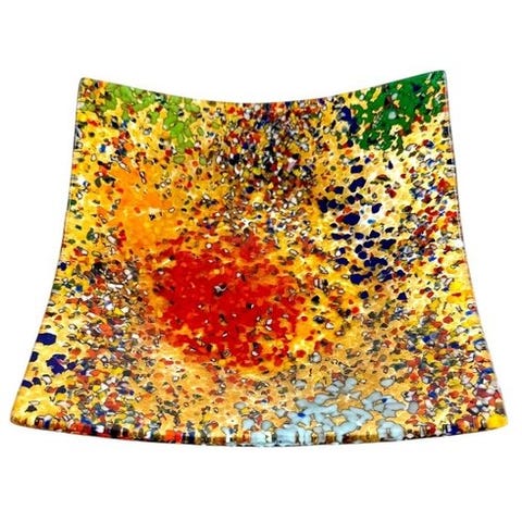 Acquamarina 17 cm Murano glasplate, håndlavet ved glasfusion, gennemsigtigt krystalglas med farvede mace og Millefiori Murrina, ny tilstand, Italien som oprindelse; mål 17 x 17 x 4 cm, vægt 350 g, inkluderer garantibevis. Klik på den blå "gå til varen" knap, for at købe eller byde på denne vare. Den samlede pris vil blive vist inden du afgiver dit bud.