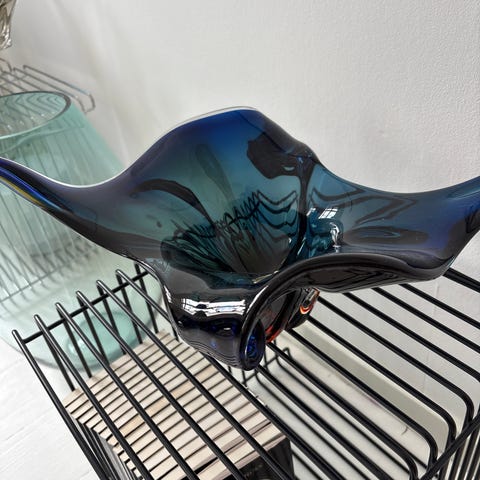 Denne særdeles elegante og monumentale vase lavet af tjekkisk kunstglas fascinerer med sin slanke, dynamisk snoede silhuet og en delikat overgang fra dyb ametistfarve til bløde opaltoner. Lyset strømmer smukt gennem glasset og skaber en luksuriøs, næsten skulpturel visuel effekt.