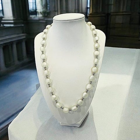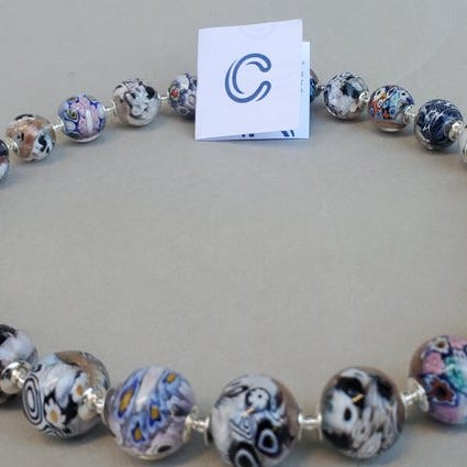 Halskæde af Murano-glas med glasperler, håndlavet af Tommasi Murano Glass, længde 53 cm med lås og kæde, vejer 100 g, med 24 kt guldblad og krystalstriber, gavepakke og Tommasi garanti-certifikat. Klik på den blå "gå til varen" knap, for at købe eller byde på denne vare. Den samlede pris vil blive vist inden du afgiver dit bud.