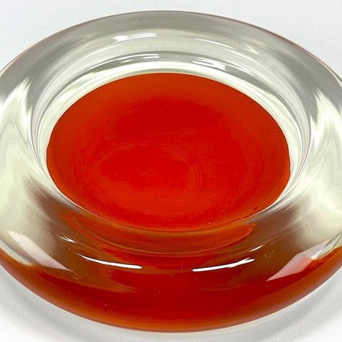 Vase Pesce i farvet mundblæst glas af Venini Murano, designet af Fulvio Bianconi for Venini, 1995, signeret og dateret 'Venini 95 Fulvio Bianconi', mål 16,5 × 10 × 10 cm, modellen udgået af produktion, tilstand som ny. Klik på den blå "gå til varen" knap, for at købe eller byde på denne vare. Den samlede pris vil blive vist inden du afgiver dit bud.