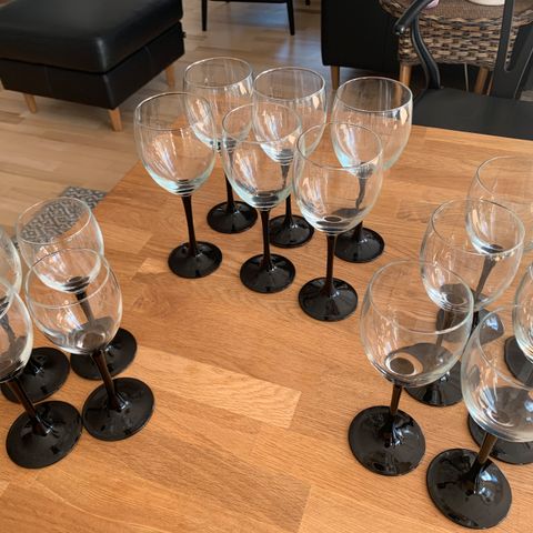 Lominarc vinglas med sort stilk. Sættet indeholder forskellige typer vinglas med sort stilk, designet til servering af vin og mousserende drikke.