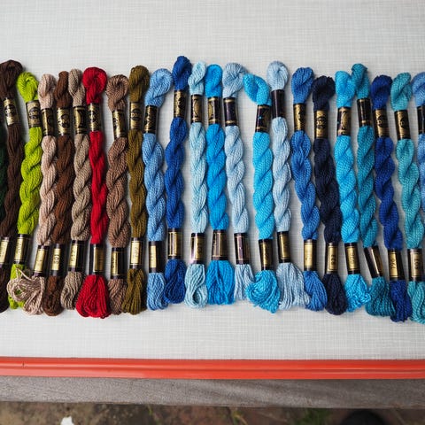 18 hele dukker perlegarn i skønne farver. Alle farver er forskellige, se farvenumre på banderolerne.