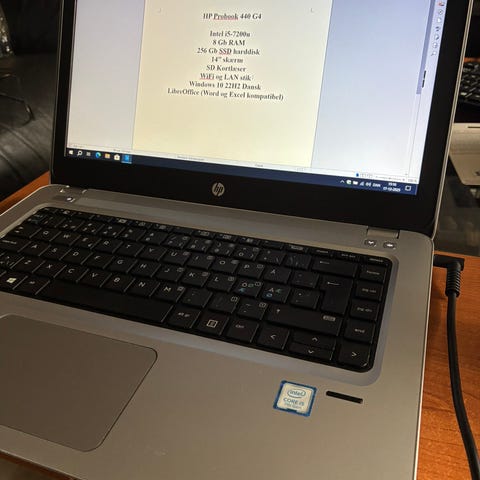 HP ProBook 4545s, Amd A4-4300M @ 2,5 GHz, DDR Ram 8 Gb, SSD HDD 120 Gb, DVD-RW, Web kamera, Amd HD 7420G grafikkort , samlet tilgængelige hukommelse 6144 Mb,HDMI udgang, Monitor 15,6”, Win 10 (64 Bit) med permanent licens, Microsoft office pakke 365, med permanent licens, Batteri holder ca. 1,5 timer, Original oplader følger med, Computeren kører fint og potentiel køber er velkommen til at prøve den før eventuelt køb.