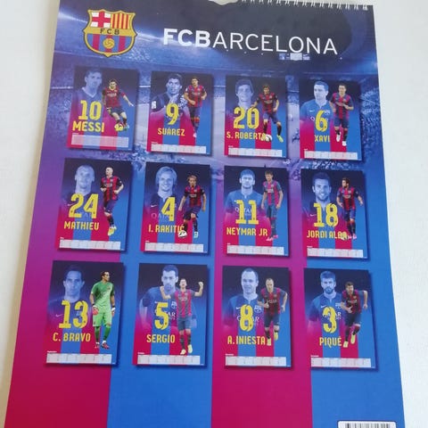 kalender med billeder, Real Madrid, kalender fra 2015 med 12 forskellige billeder af spillere fra Real Madrid, måler 30x40 cm, kalenderen er nederst på billedet og kan fjernes, kan bruges til bordpynt/sangskjuler til fodboldspilleren eller hvis teamet er fodbold til børnefødselsdag