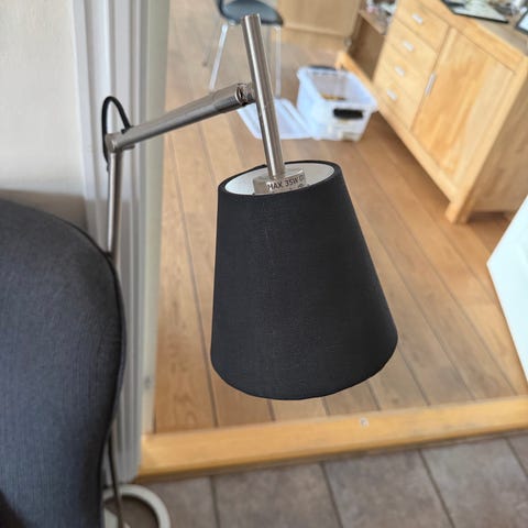 Fin standerlampe med fjer købt i Ilva for 800 kr.