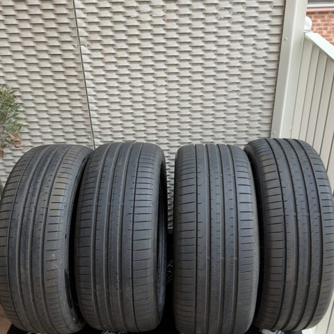 Rigtig gode sommerdæk sælges grundet overgang til helårsdæk. De har sat på en Audi A6 Etron, som kører med bredde dæk bag og mindre for. Se billede for præcis spec.