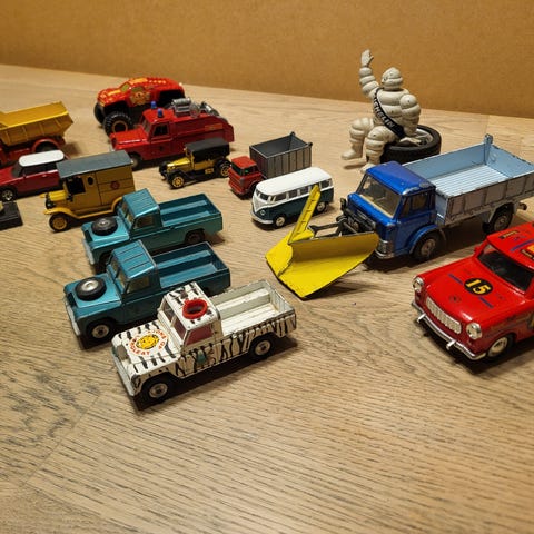 2 stk. 1:12 i træ. 1 stk.. 1:18 , 1 stk. 1:24 , 2 stk. Skilte. Og bil samle sæt 1 stk. Det hele 300 kr.
