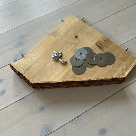 Blåt hjul Ø 30 H: 17 til at stille i bunden , lyserødt hjul Ø 28 H: 34 kan stå på foden eller hænges op mellem tremmerne.