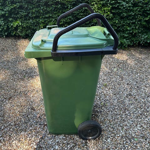 Stor galvaniseret beholder til have og affald. To låger, top- og sidehængt.