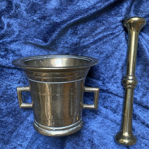 Vejer 900 gram (føles tung og solid). Højde 8,5 cm - diameter foroven 7 cm - pistil 14 cm