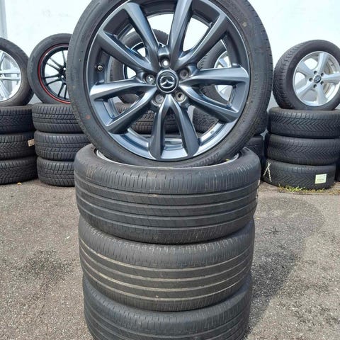 Originale Mazda alufælge med Bridgestone Turanza sommerdæk 215/55 R18.