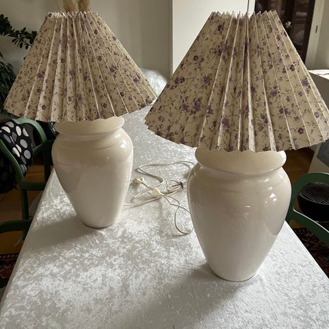 2 stk. elegante bordlamper sælges samlet evt. inkl. skærme. Mål: 16x16x55 cm