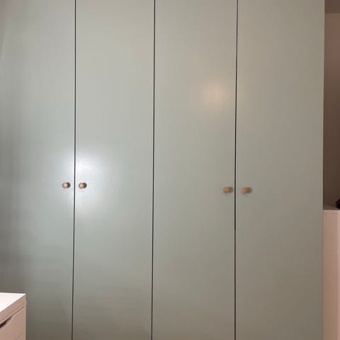 3 skabe 2 stk på 75 cm med skyde låger 1 stk på 50 cm med spejl. Indretning følger med. Pax
