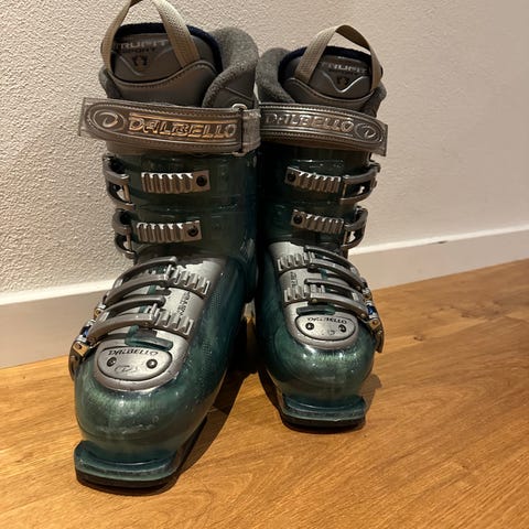 Skistøvler fra Dalbello. Brugt flere sæsoner og har tydelige brugsspor. Har stadig nogle gode sæsoner i sig.