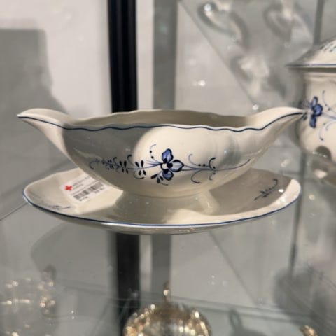 Porcelæn, sauceskål, blå blomst, 22x16x11 cm