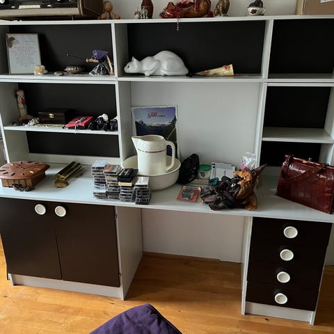 Skrivebord med skuffer og hylder