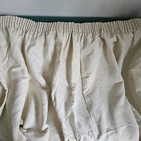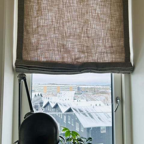 De er let gennemsigtige og i hør-look og med lidt struktur i stoffet.