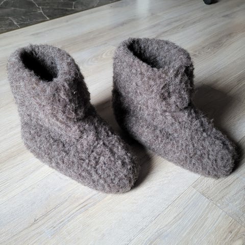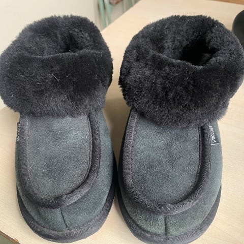 Helt ubrugte og nye hjemmesko fra Green Comfort, Wool, model Tibet. Sælges for bekendt, so har fået dem i julegave sidste år i forkert str - og hun fik dem desværre ikke returneret. Rigtigt gode kvalitets hjemmesko, håndlavede i Nepal, designet i Danmark. Med gummisål. Fin grå farve - kan bruges af kvinde, mand eller barn med sko str 40, lækre, varme og bløde, i original dust-bag. Har været opbevaret ordentligt i ikke-ryger hjem. Normalpris 550 kr.
