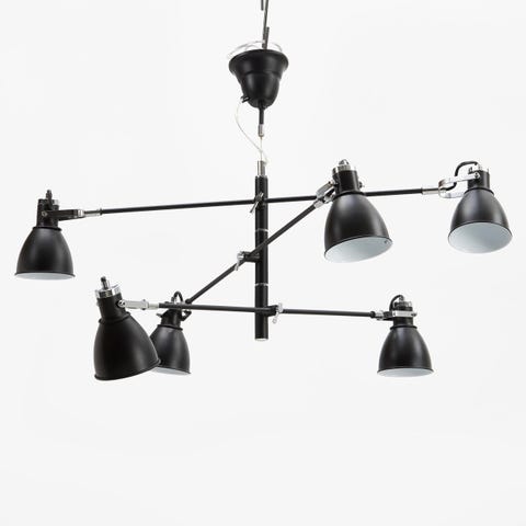 Flot og praktisk loftslampe fra By Rydéns, model Correct 4 i mat sort med guldfarvede fatninger. Correct loftslampe fra By Rydéns med en sort metalskinne og base, med fire justerbare spotlights til at kontrollere lysretningen. 83 cm bred.