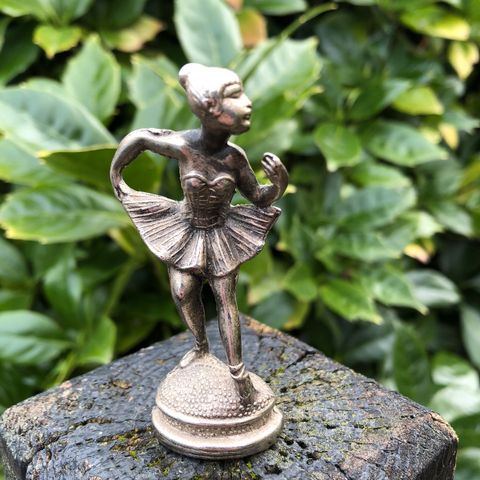 Flotte dansende ballerinaer. En metal art ?? Som har fået et antik look. Mega flot. 24 cm høj og foden 11 x 6 cm