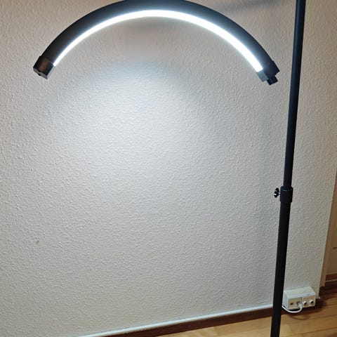 10" LED Ring Light/selfie light med tripod og fjernbetjening. Ringlyset har tre indstillinger/toner. Stort set ubrugt. Kan sendes.