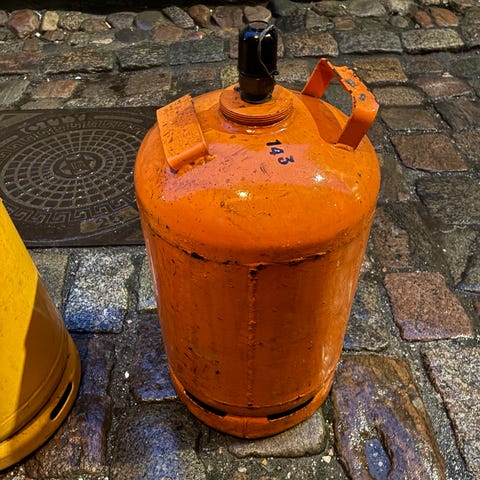 To stk. letvægtsgasflasker (10 kg) med gas. Sælges enkeltvis (kr. 500 stykket) eller samlet