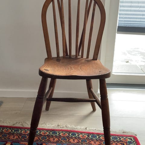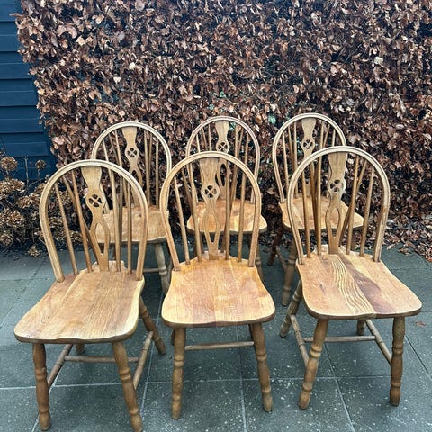Solide winsor stole. Et par af dem har en lille revne i sædet men kan laves eller bare være der som ekstra patina. De er super holdbare. Pris er for alle 4. Der er muligvis 2 til hvis du skal bruge 6 stk.